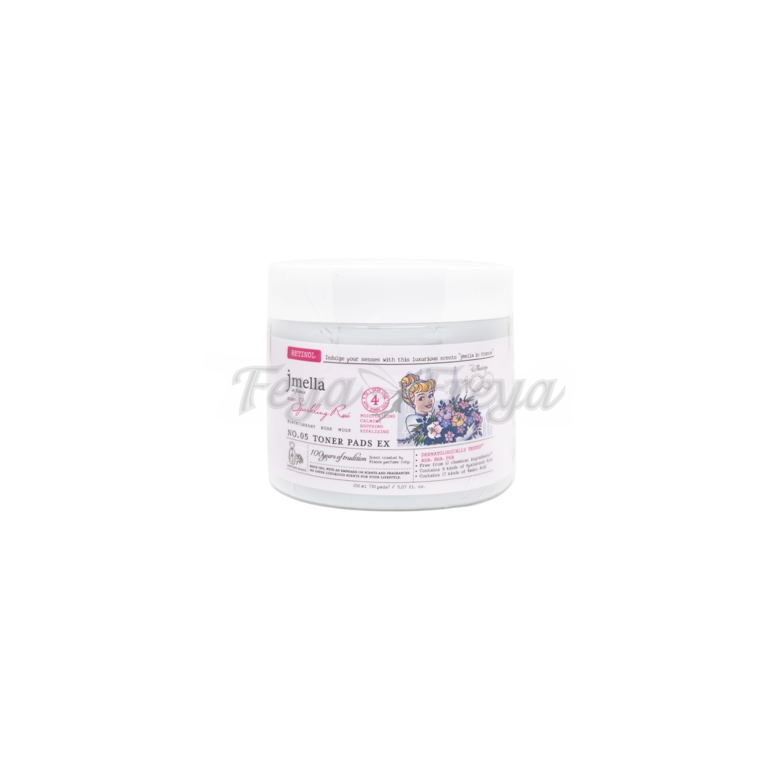 JMELLA IN FRANCE SPARKLING ROSE TONER EX PADS x DISNEY 100 Парфюмированные очищающие педы для лица "Сверкающая роза" (Золушка) 70шт
